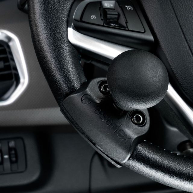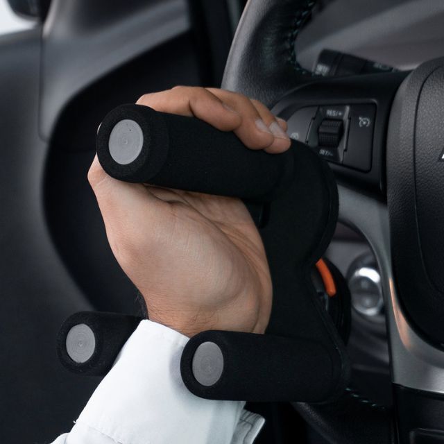 O equipamento pode ser instalado em qualquer tipo de volante e ajustado ao tamanho da mão do motorista, devido a regulagem dos pontos.